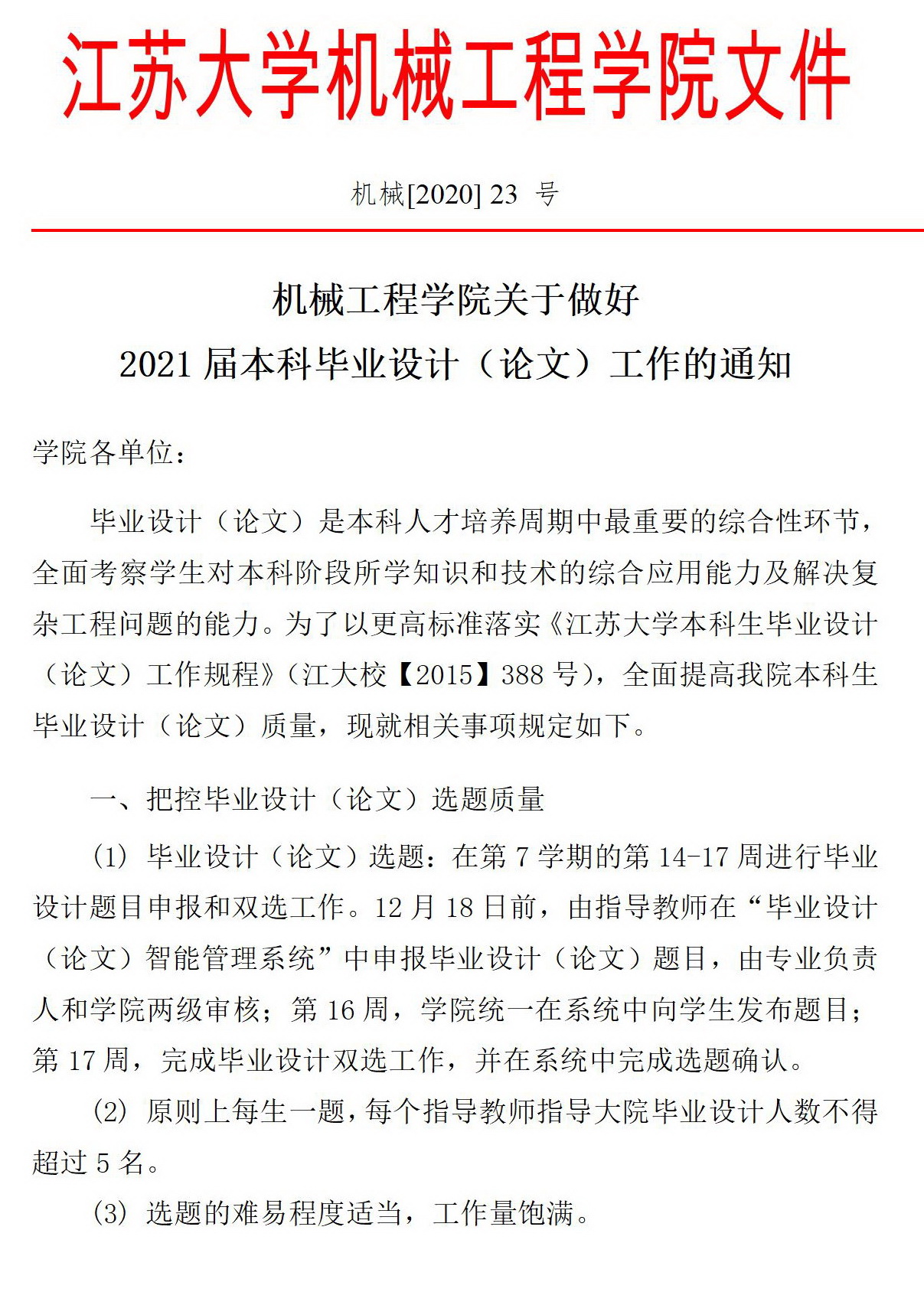 机械学院关于做好2021届本科毕业设计(论文)工作的通知