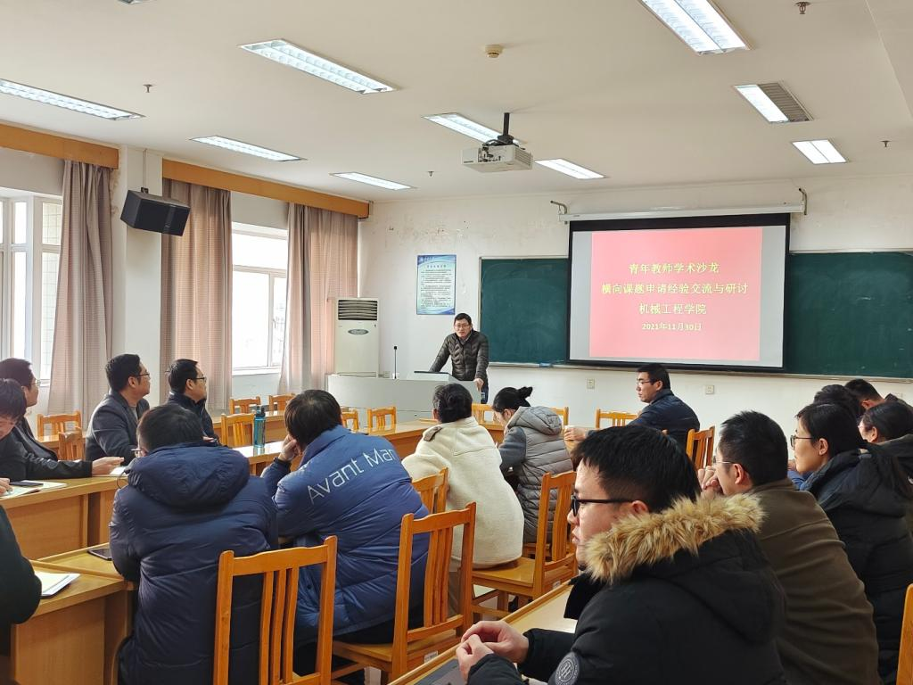 11月30日下午,机械学院青年教师学术沙龙活动在机械楼A312举行,此次沙龙活动的主题为“横向课题的申请经验交流与研讨”。活动邀请了袁浩副教授、陈修祥副教授作经验分享,学院青年教师参加。