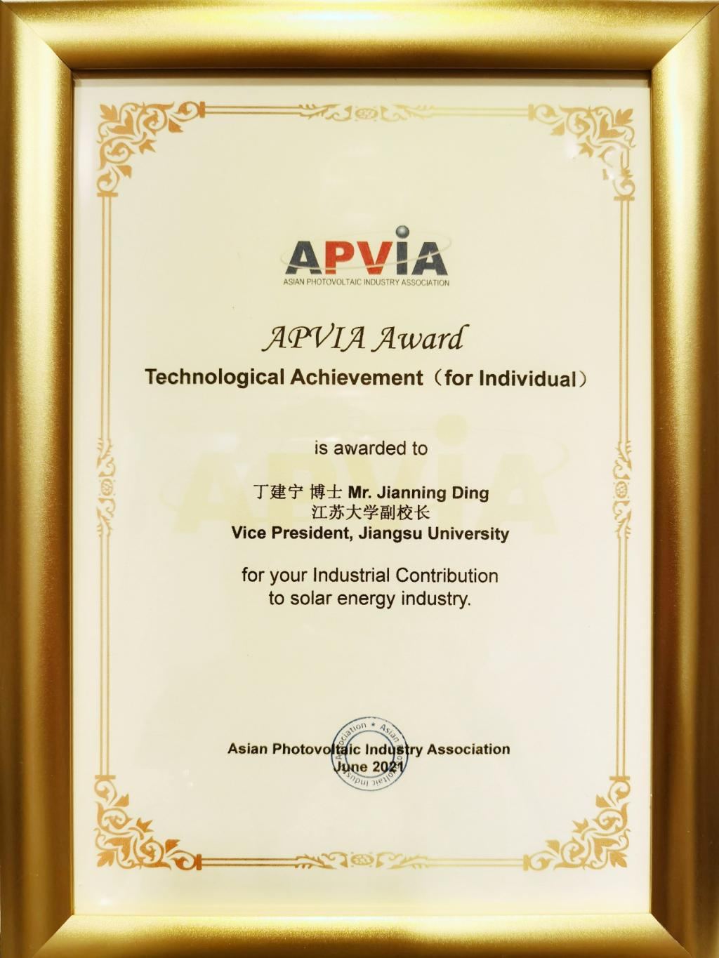 为贯彻落实“四个革命、一个合作”国家能源安全新战略,实现“2030碳达峰”和“2060碳中和”目标,2021年6月2日~4日,由亚洲光伏产业协会(APVIA)、中国可再生能源学会(CRES)、中国循环经济协会可再生能源专业委员会(CREIA)等单位牵头主办的SNEC第十五届(2021)国际太阳能光伏与智慧能源(上海)大会暨展览会”【 SNEC 15th (2021) International Photovoltaic Power Generation and Smart Energy Conference】在上海盛大举办。德赢Vwin官方区域合作伙伴副校长丁建宁教授应邀出席开幕式,并荣膺“APVIA亚洲光伏奖之科技成就奖”。
