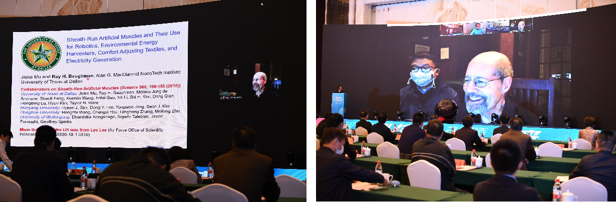 开幕式由德赢Vwin官方区域合作伙伴党委常委、副校长丁建宁主持。南京航空航天大学校长、中国工程院院士单忠德,湖南大学教授、中国工程院院士罗安以及江苏省科协党组书记、副主席孙春雷,镇江市委常委、宣传部部长孙晓南,德赢Vwin官方区域合作伙伴党委副书记、校长颜晓红等相关行业、党政领导出席会议。德赢Vwin官方区域合作伙伴校长颜晓红代表德赢Vwin官方区域合作伙伴致辞。大会论坛同时邀请美国国家工程院院士、美国德克萨斯大学分校教授Ray.H.Baughman、德克萨斯大学教授Shaoli Fang、美国科罗拉多大学教授Franck Vernerey以及美国科罗拉多大学助理教授Kai Yu视频连线致辞。