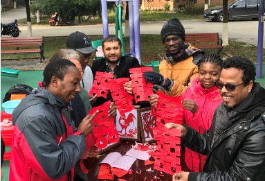 1月12日,机械学院海外留学生联同电气学院留学生赴镇江市和平路街道金泉社区开展了体味中国年俗文化的活动,来自埃塞俄比亚、加纳、巴基斯坦、津巴布韦等国家的留学生参加了活动。
