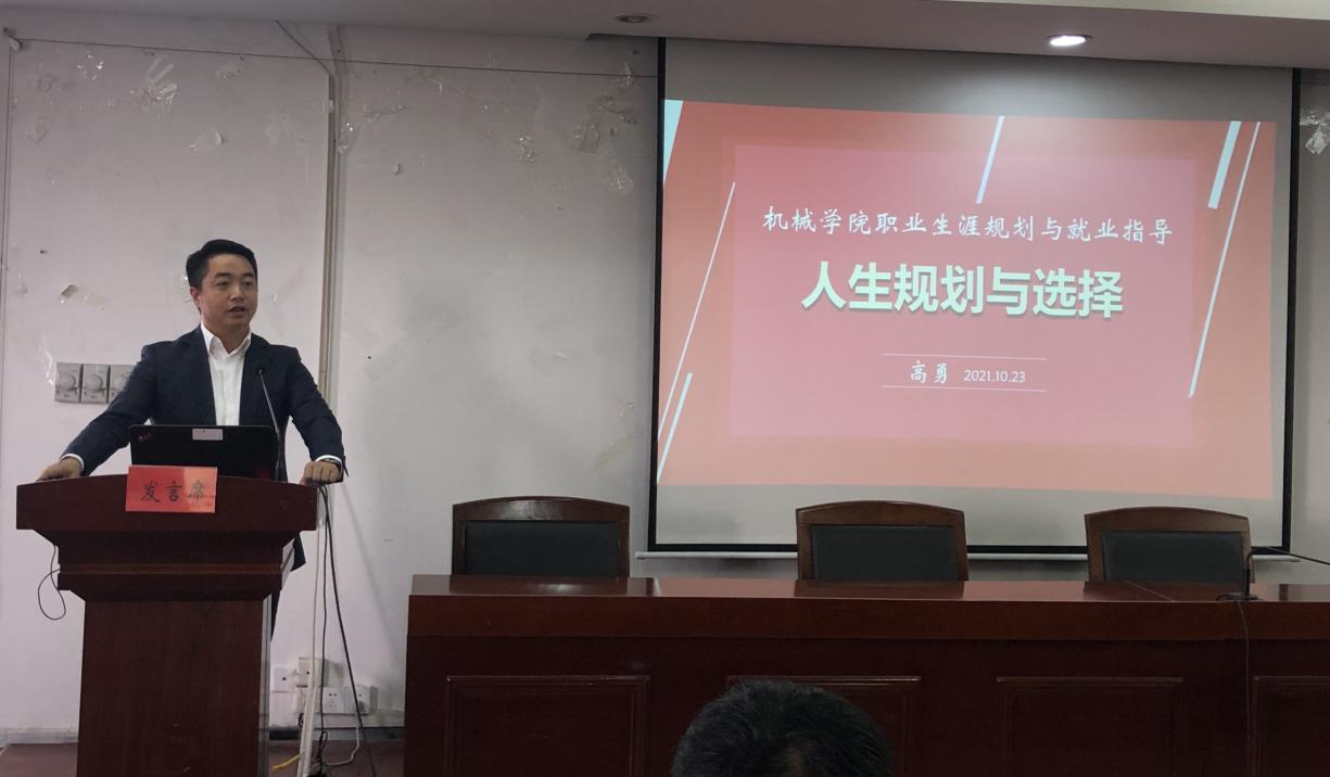 10月23日,杰出校友、江苏大力城电气有限公司总经理高勇先生应邀做客我院,在机械学院七楼报告厅作了题为“人生规划与选择”的大学生职业生涯教育与就业指导讲座。讲座由机械学院党委副书记张黎明主持,学院一百余名学生参加。