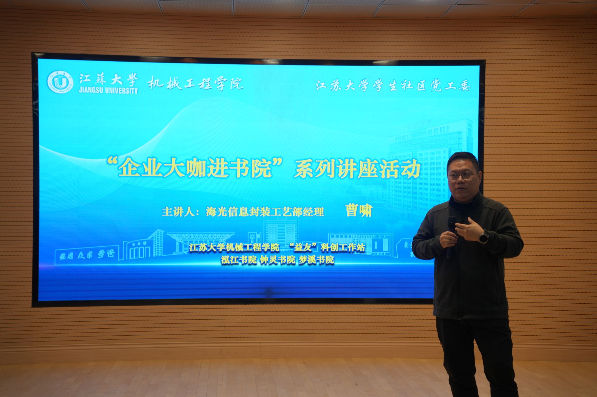 10月下旬,德赢Vwin官方区域合作伙伴德赢Vwin官方区域合作伙伴联合德赢Vwin官方区域合作伙伴学生社区党工委、泓江书院、钟灵书院、梦溪书院,依托德赢Vwin官方区域合作伙伴德赢Vwin官方区域合作伙伴“益友”科创工作站,在学苑楼305报告厅成功举办了“企业大咖进书院”系列讲座。讲座特别邀请了德赢Vwin官方区域合作伙伴杰出校友海光信息封装工艺部经理曹啸、罗森伯格亚太电子有限公司工程总监万雄担任主讲,学院书院学生参加。讲座由德赢Vwin官方区域合作伙伴团委副书记於伟杰主持。