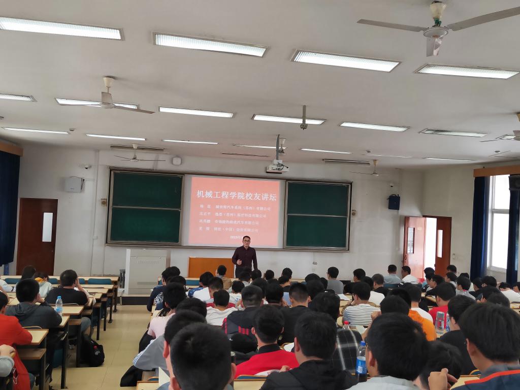 4月24日,机械学院在讲堂群201、202教室成功举办了服务育人之校友讲坛。耐世特汽车系统(苏州)有限公司产品架构经理杨昆、逸思(苏州)医疗科技有限公司工厂经理沈正平、博世(中国)投资有限公司亚太区采购经理夏樑、奇瑞捷豹路虎汽车有限公司部门经理巩秀鹏、学工办主任陈秋月、2017级专职辅导员还玉婷、2017级全体本科生参加了本次讲坛。讲坛由学院党委副书记潘红军主持。