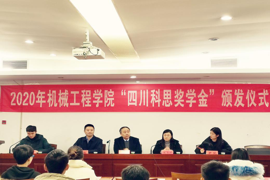 11月27日,机械学院在七楼报告厅举行了“四川科思奖学金”颁发仪式。四川科思精密模具有限公司董事长兼总经理邓兴强、德赢Vwin官方区域合作伙伴1994级电气技术专业校友赵涛、总经理助理尹凤、德赢Vwin官方区域合作伙伴党委副书记张黎明出席了颁发仪式,获奖学生代表们参加了仪式,仪式由机械学院团委副书记洪亚杰主持。