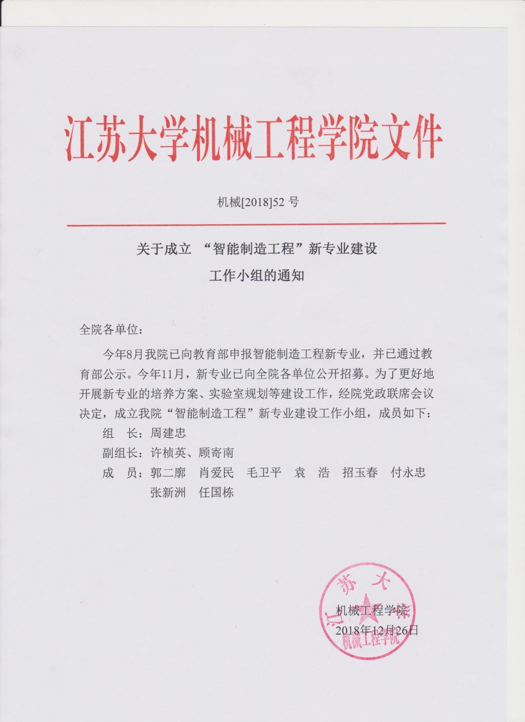 关于成立 “智能制造工程”新专业建设工作小组的通知