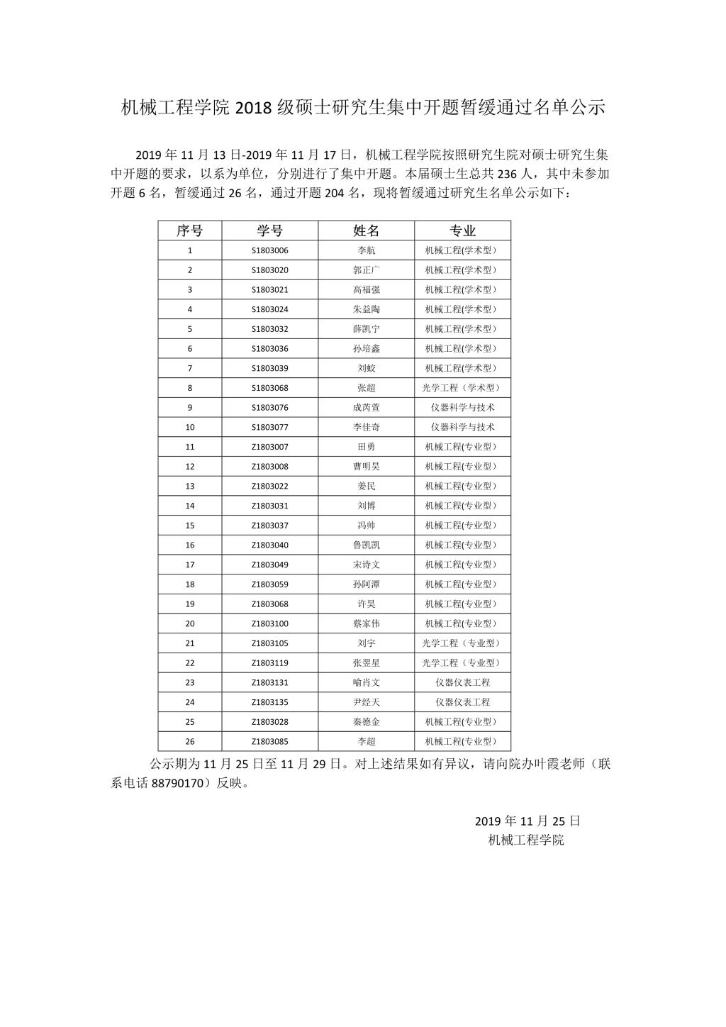 德赢Vwin官方区域合作伙伴2018级硕士研究生集中开题暂缓通过名单公示