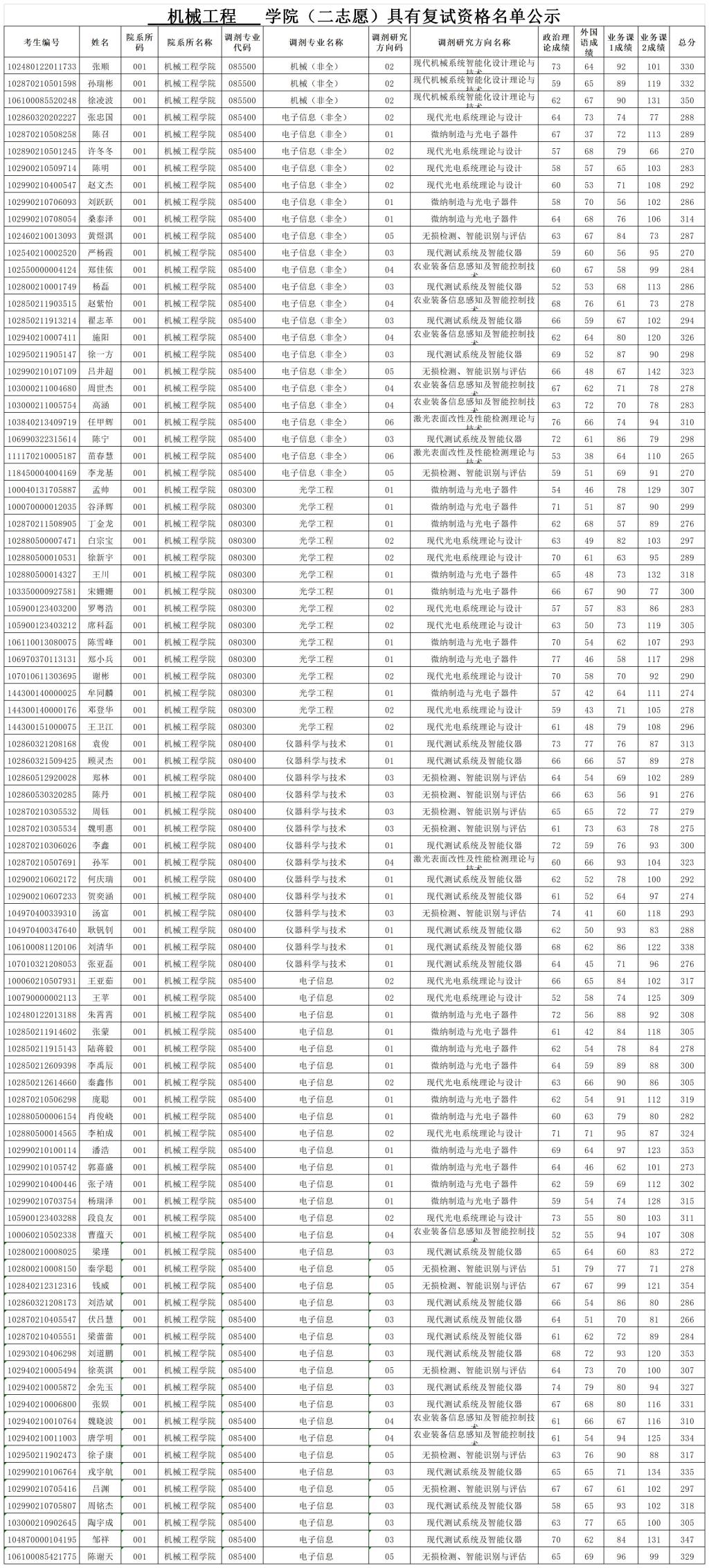机械工程 学院(二志愿)具有复试资格名单公示.xlsx