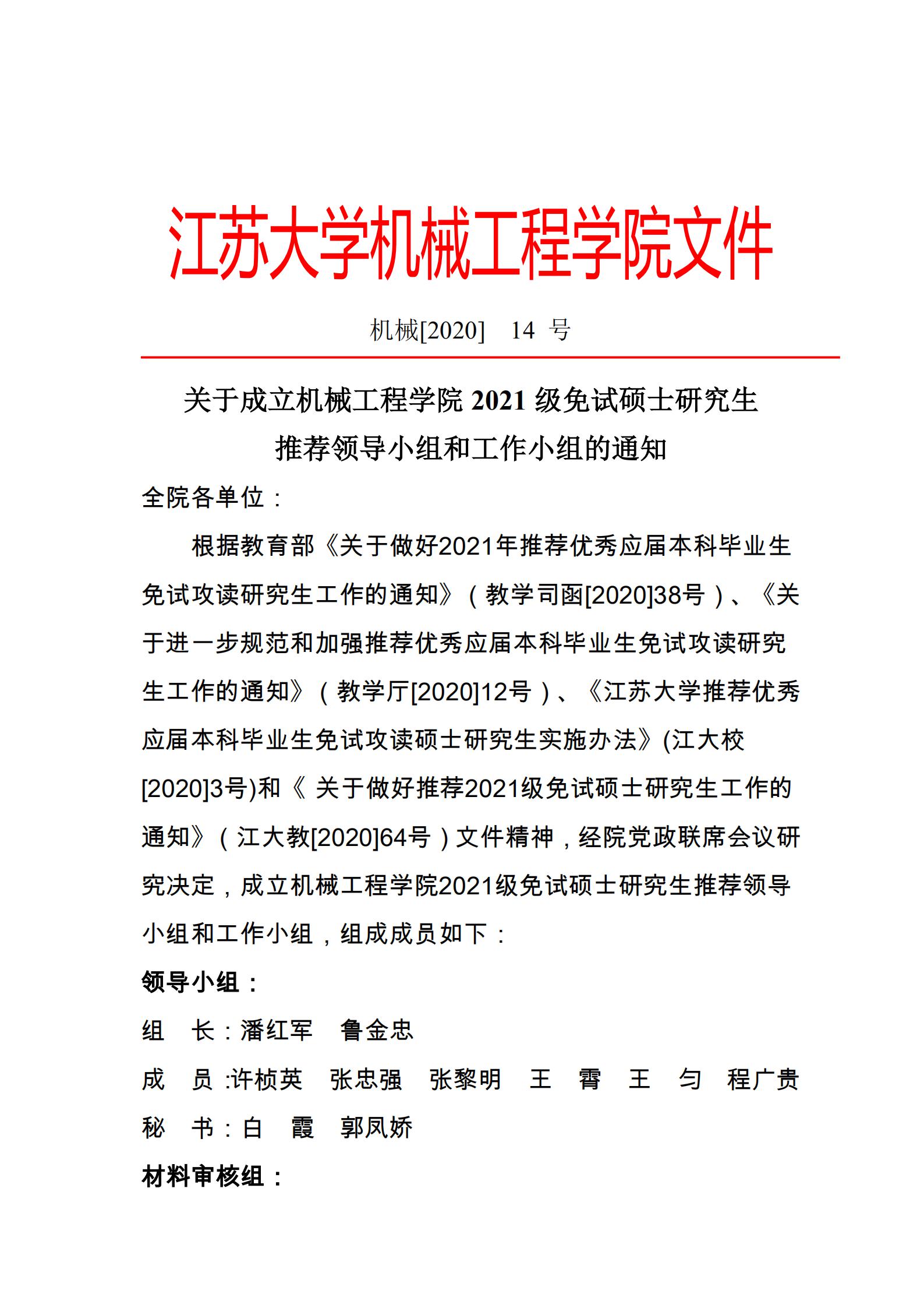 机械[2020]-14号-关于成立德赢Vwin官方区域合作伙伴2021级免试硕士研究生推荐领导小组和工作小组的通知.pdf