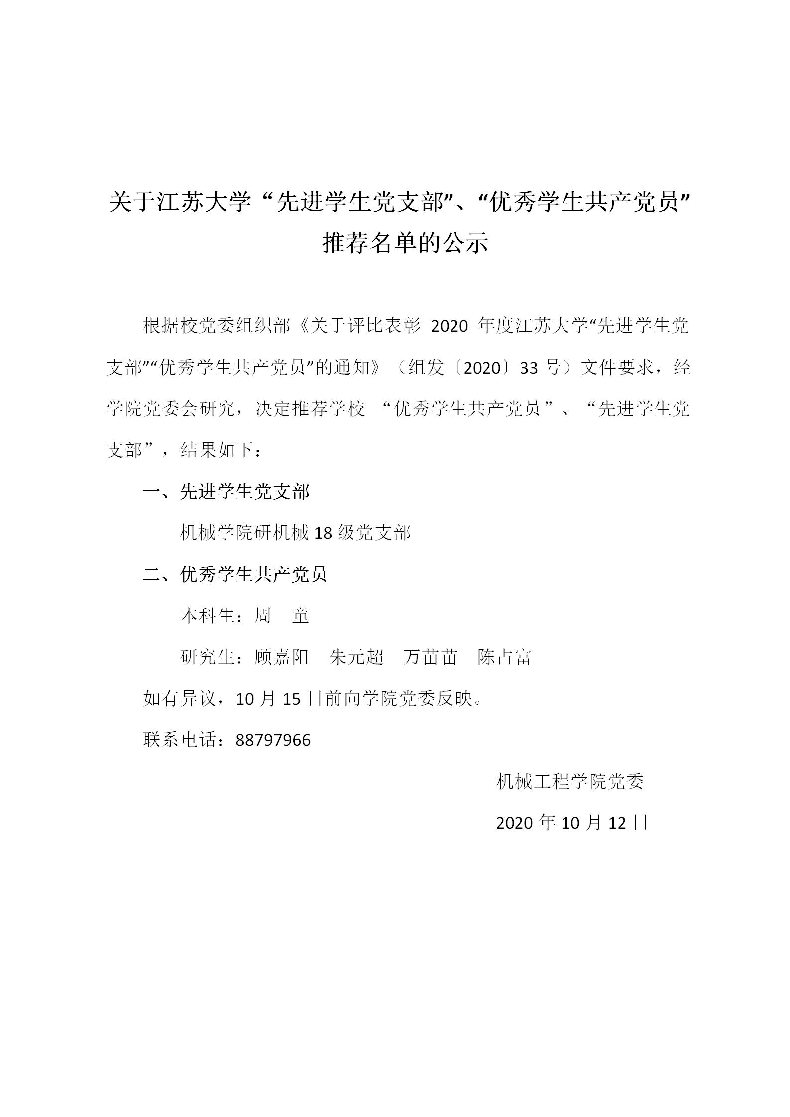 关于德赢Vwin官方区域合作伙伴“先进学生党支部”、“优秀学生共产党员”推荐名单的公示
