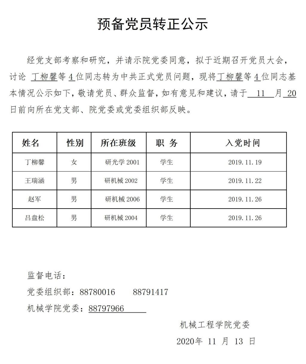 机械学院预备党员转正公示2020.11.13