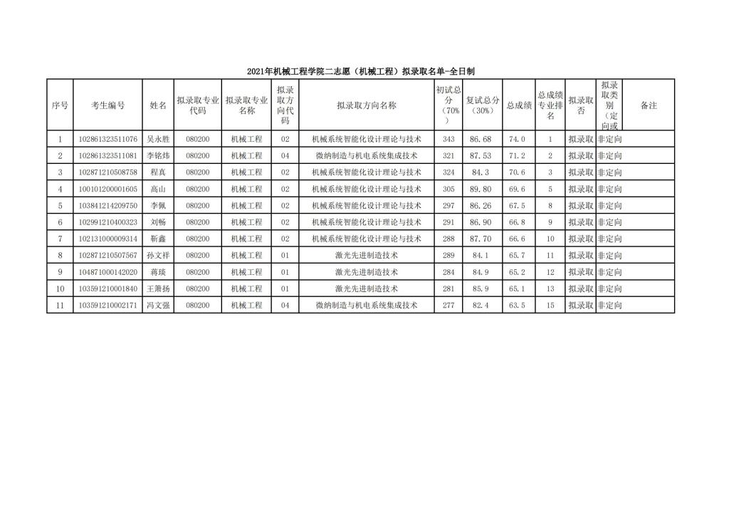 2021年德赢Vwin官方区域合作伙伴二志愿(机械工程)拟录取名单-全日制-3月28日