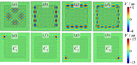 图3电场分布情况:(a)体态;(b)-(d)边界态;(e)-(h)角态