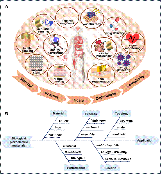 图5. 生物压电材料的潜在应用和相互关系