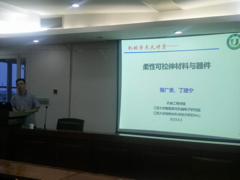 6月5日,“机械学术大讲堂”邀请了我院机电系主任程广贵教授在机械学院七楼学术报告厅做了关于“柔性可拉伸材料与器件”的学术报告。本次讲座由机电系教工党支部书记葛道晗副教授主持。