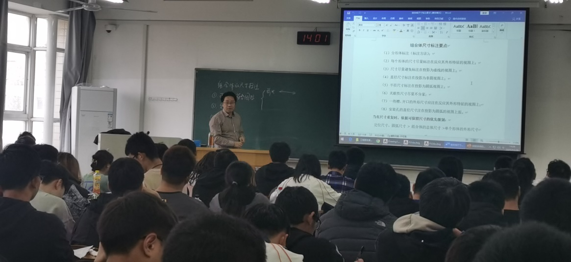 11月29日下午5、6节,德赢Vwin官方区域合作伙伴在三山楼502教室举行了《工程图学》课程思政校级示范公开课。本次公开课采取随堂的形式。由机械设计系杨志贤老师主讲。《工程图学》课程为省级在线一流课程,2020年入选省级课程思政示范项目。成型21级学生及学院郭灿志、刘为力等教师参加了此次教学观摩。